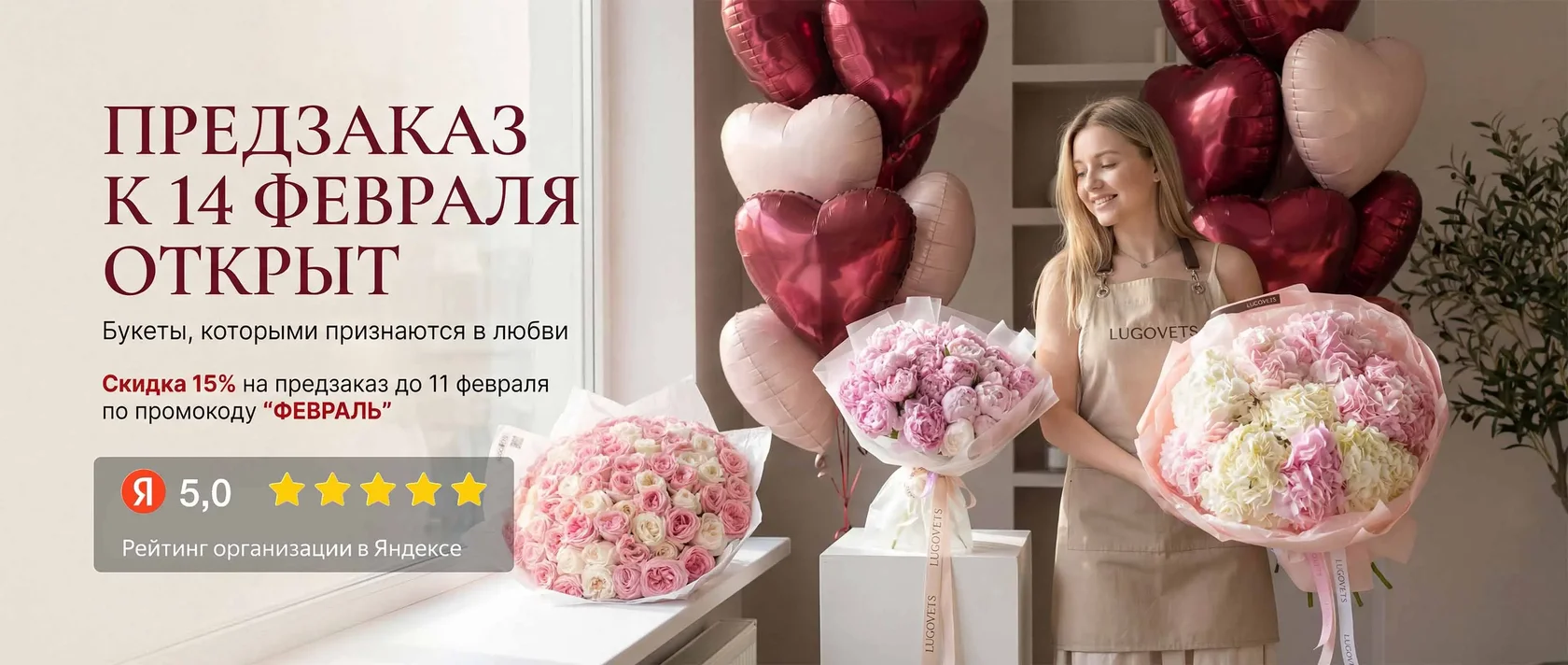 Наша цель — чтобы каждый букет от Lugovets Flowers стал маленьким событием. Мы стремимся быть лучшими в городе по качеству цветов, скорости доставки и уровню сервиса.
